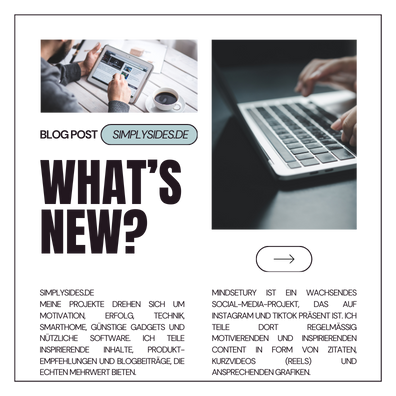 Einer der zentralen Bestandteile von SimplySides ist mein eigener Blog, in dem ich regelmäßig neue Artikel veröffentliche. Die Themen reichen von Motivation & Erfolg über Technik & Smarthome bis hin zu nützlicher Software und cleveren Gadgets. Ich teile hier nicht nur Wissen, sondern auch persönliche Erfahrungen und Empfehlungen.